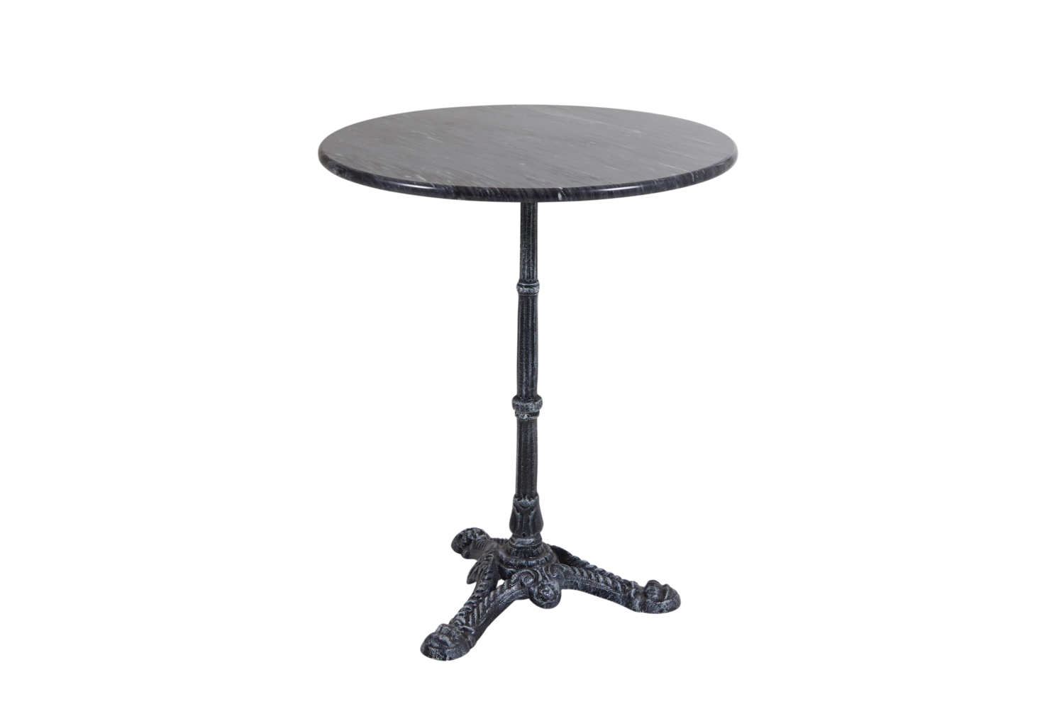 Marmorbord med underrede i gjutjärn och bordsskiva av vit eller svart marmor.