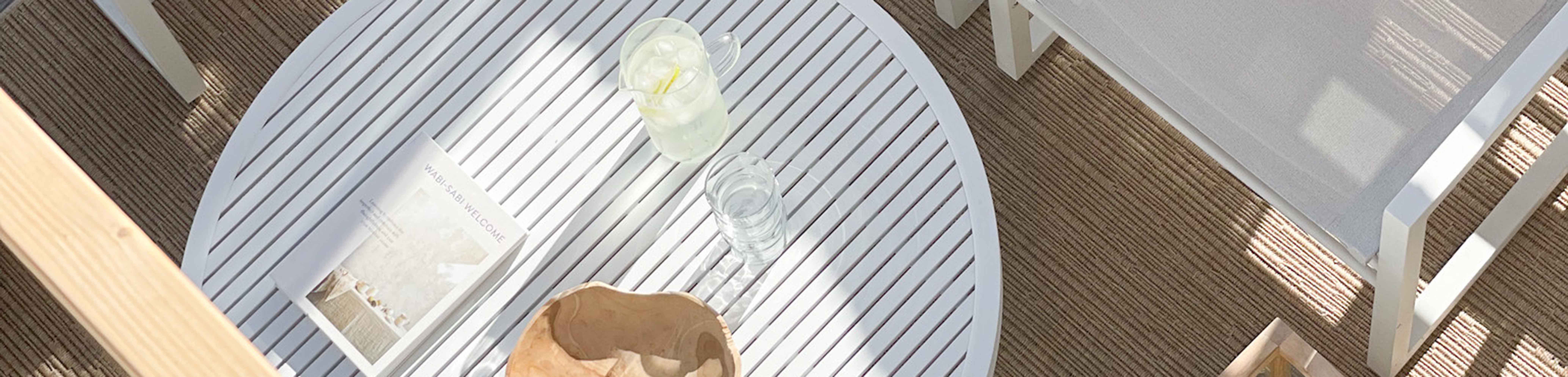 – Hållbara material som klarar av den skandinaviska sommaren. Gärna sådana som kräver så lite underhåll som möjligt. Hårda material som aluminium är bra och har ofta en fin design med raka linjer. Sen kan man mjuka upp det hårda med textilier och trädetaljer.