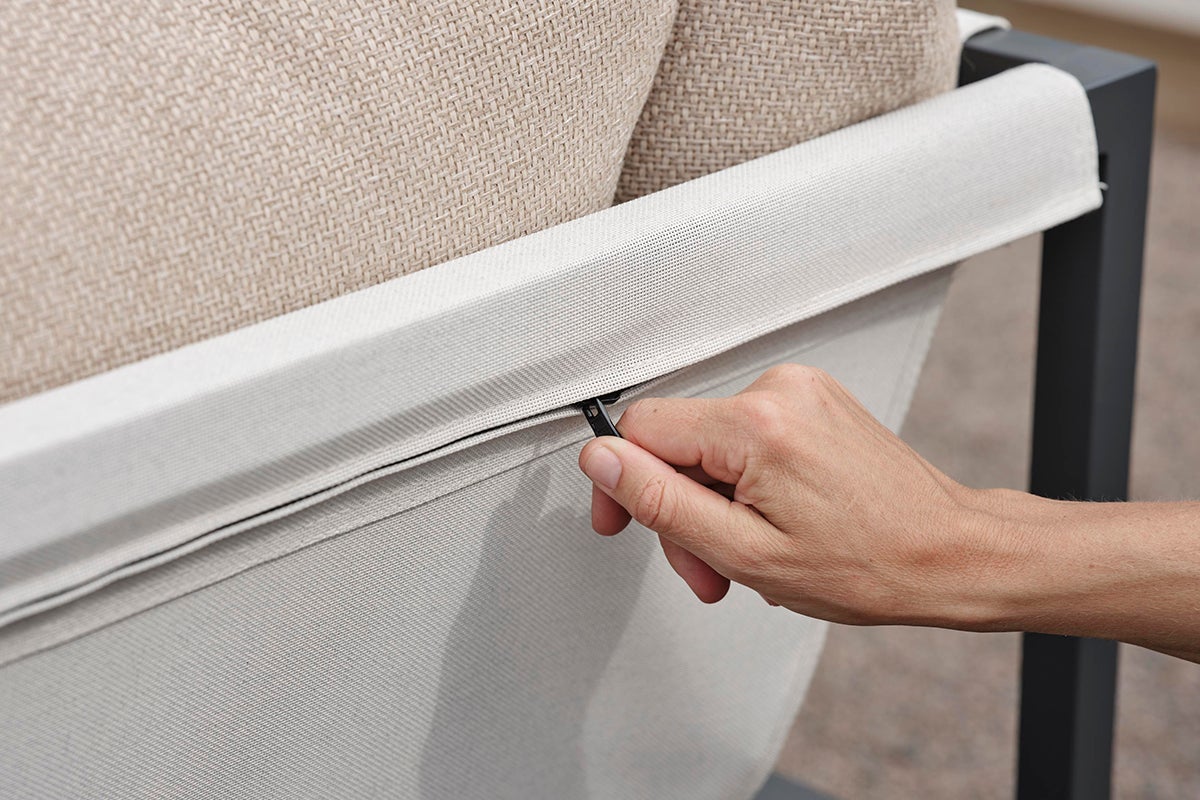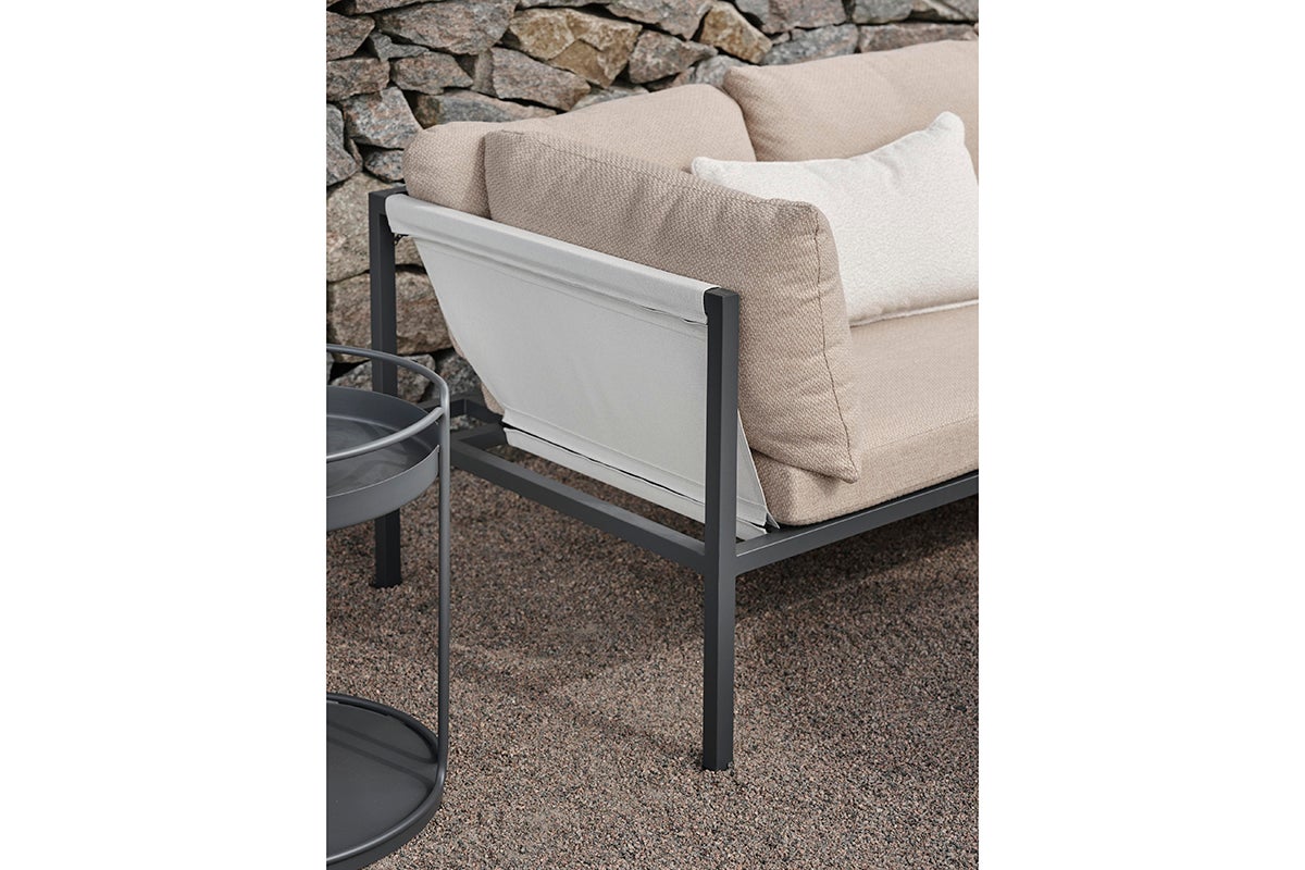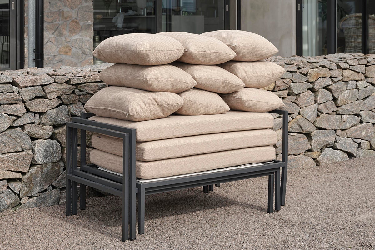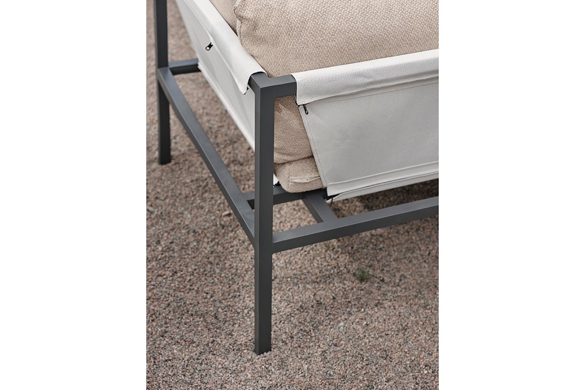 Allie – allt i en låda. Upplev den perfekta blandningen av enkelhet och sofistikerad design, där varje element – från aluminiumramen till den livfulla textilensitsen. Bekväma kuddar i ett modernt kornfärgat tyg – allt kommer snyggt förpackat i en enda låda. Att montera din utomhusoas har aldrig varit enklare, vilket låter dig fokusera på att njuta av ditt utrymme snarare än på uppsättningen. Dess smarta konstruktion gör det också enkelt att förvara under vintern.
