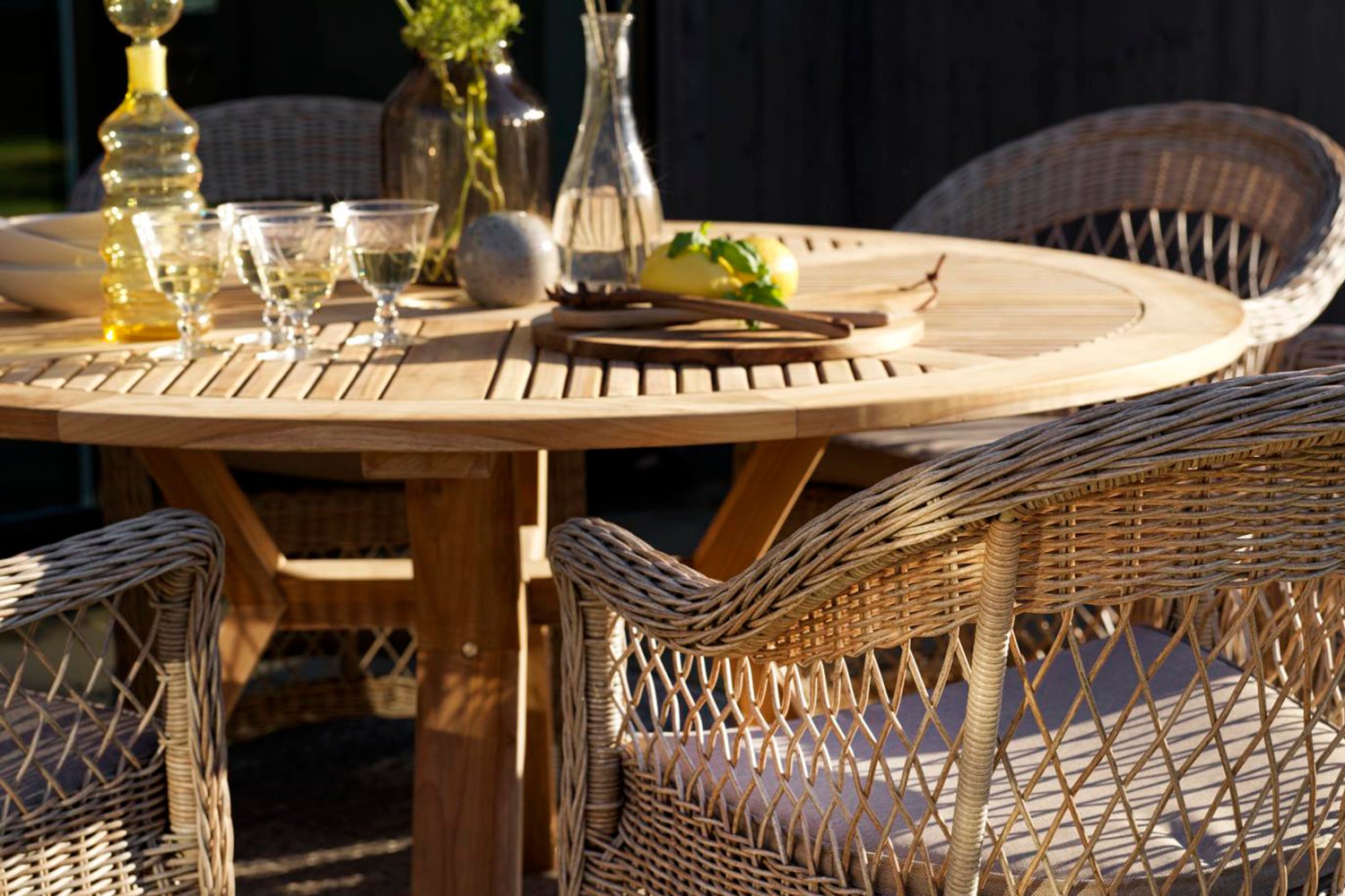 Circus är rustika bord teak i olika storlekar. Bordet med 180 cm i diameter levereras komplett med serveringsbricka av glas med superstone (inklusive snurrbeslag). Borden med 130 och 150 cm i diameter går inte att komplettera med serveringsbricka.