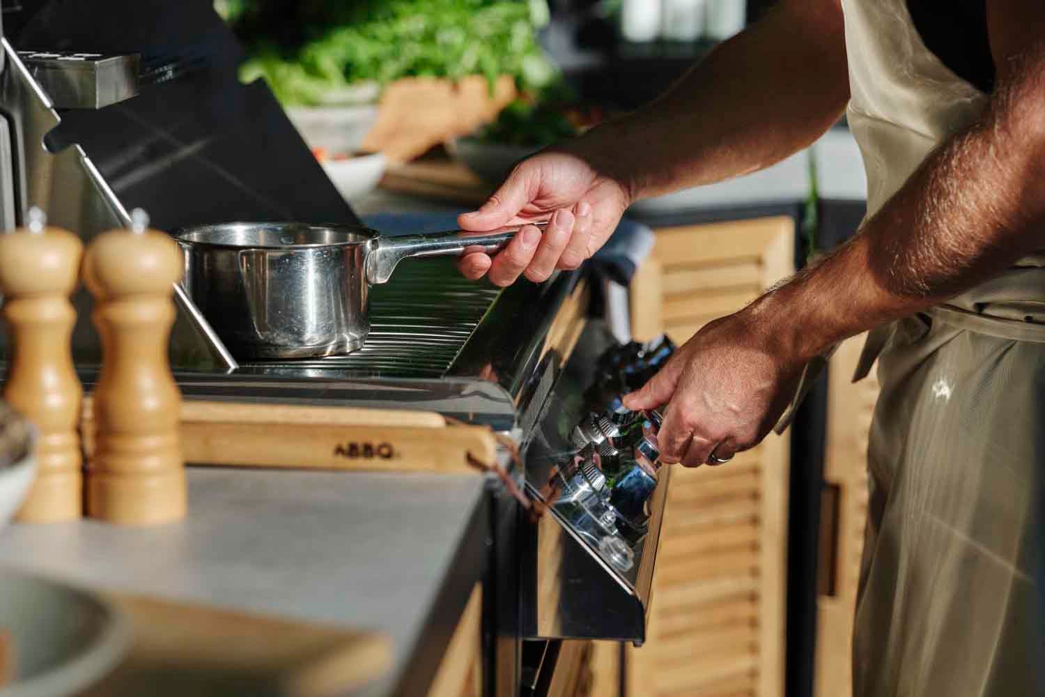 utekök, Svart/teak