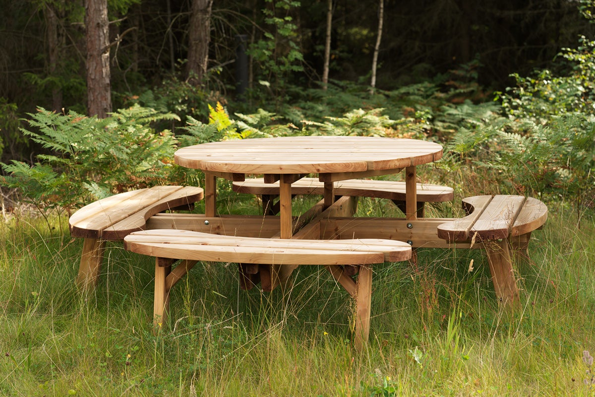 Stabilt picknickset i brun, impregnerad furu – den perfekta kombinationen av hållbarhet och funktion för utomhusaktiviteter. Tilllverkat av högkvalitativ furu som genomgått en brun impregnering, vilket inte bara framhäver träets naturliga ådring utan ger också effektivt skydd mot väder och vind. Genomtänkt design med generösa sittplatser och ett rymligt rekatangulärt bord, perfekt för familjesammankomster, trädgårdsfester eller en lugn stund i solen.