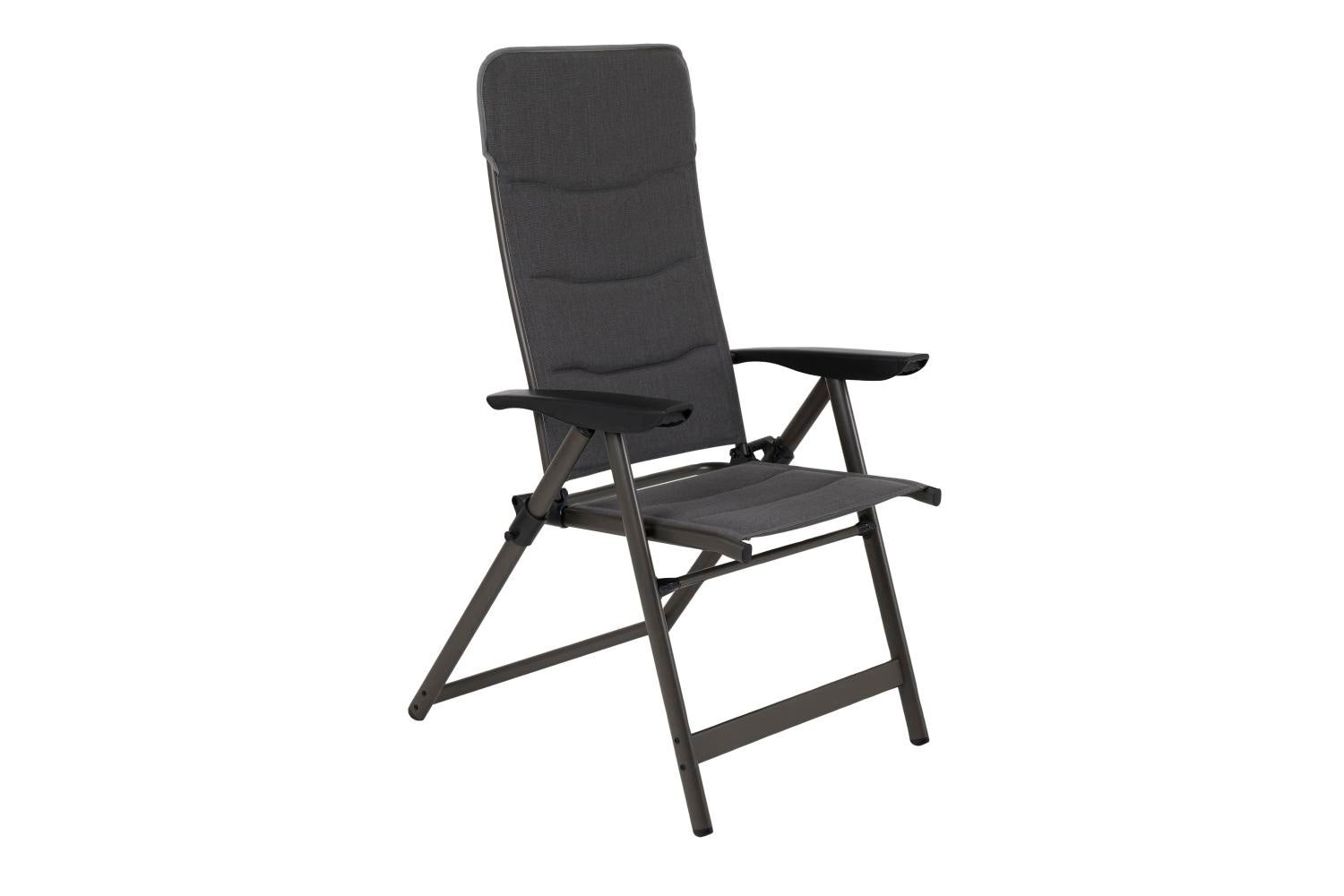 Fällbar vilstol av pulverlackerat aluminium med olefinfibrer i sitsen.