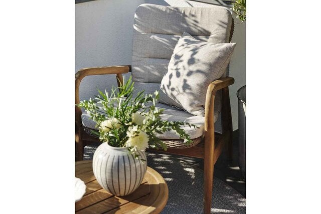 Lilja är en grupp gjord för att passa både till avkoppling och måltider. Runda organiska former i teak. Rejäla delar som samtidigt har en elegans i sina rundade detaljer.
