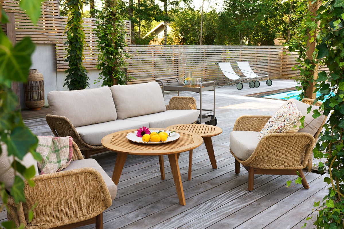 Lily är en generös loungeserie med djup komfort och mjuk elegans för avslappnad lyx. Den extra djupa sitsen och de fylliga dynorna bjuder in till vila och skapar en omslutande känsla. Den twistade konstrottingen i kombination med benen i teak ger ett naturligt uttryck med varm karaktär.