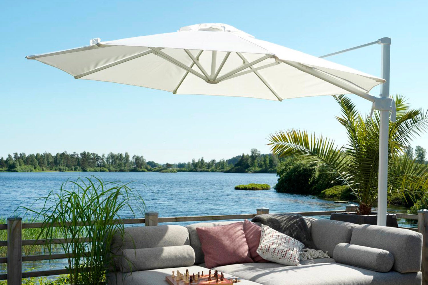 Linz är ett frihängande parasoll i aluminium med tiltfunktion. Parasollet är tiltbart i framled och i rotation. Parasollduken är av 250 g polyester. Fotkors ingår och det måste förankras med parasollfotsvikter eller skruvas fast i marken. Parasollfotsvikter ingår ej.