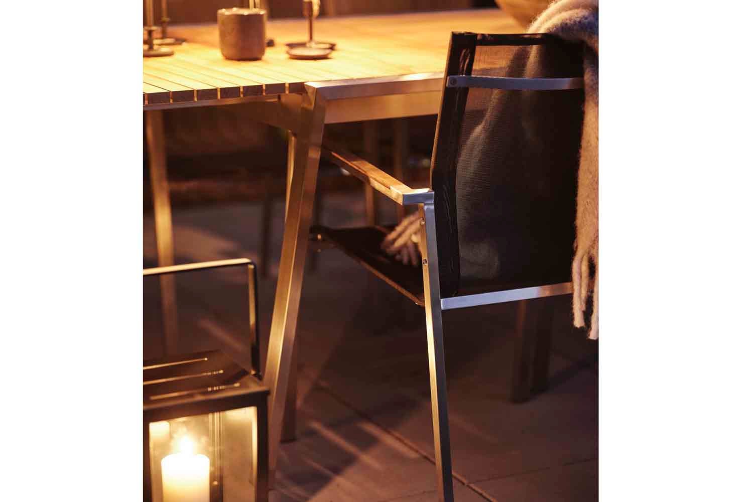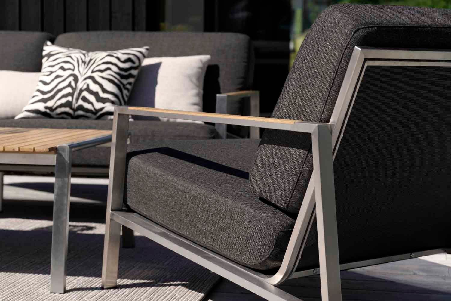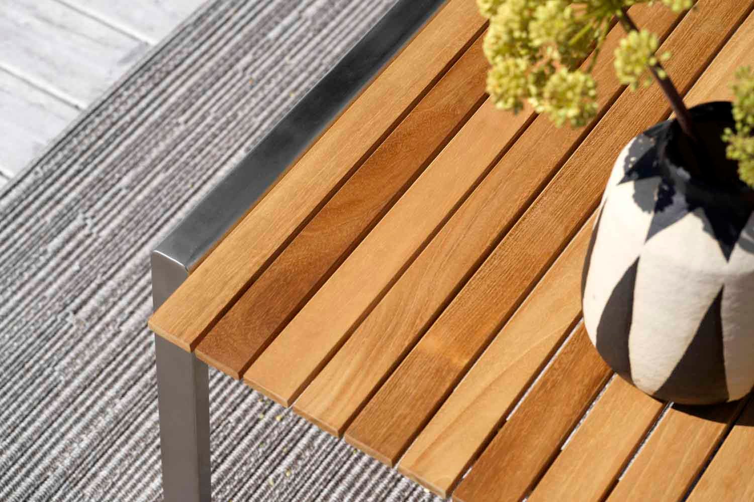 Rena linjer och tidlös design i en modern tappning. Naos är en serie där blandningen av material är gjord med yttersta finess; rostfritt stål (316) och teakdetaljer.