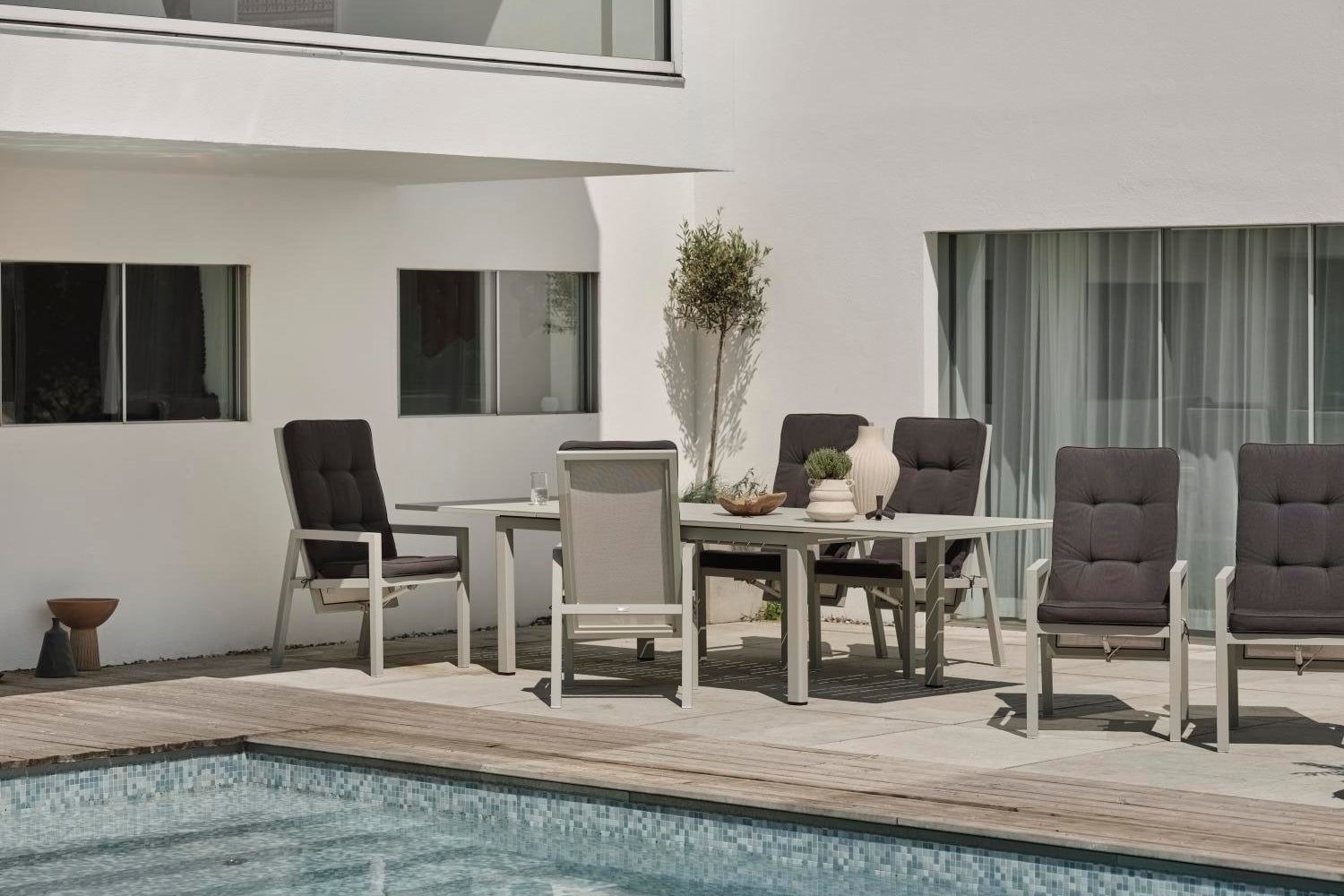 Newfort är en robust positionsstol med en bibehållen lätthet i formen. Med en stiligt dold knapp kan du lätt variera mellan upprätt och avslappnat läge.