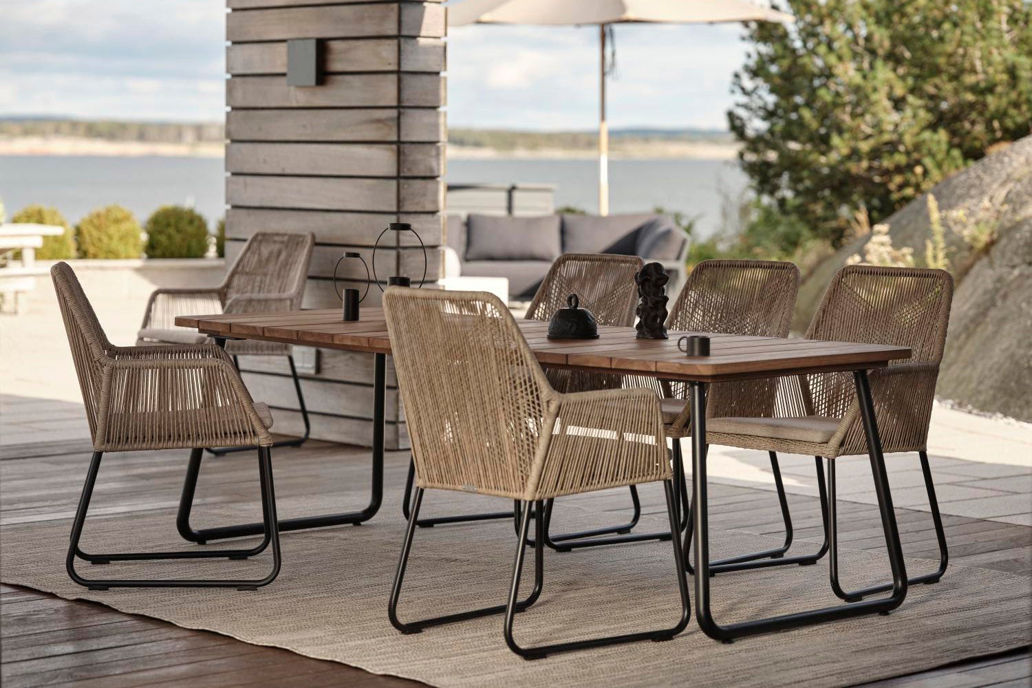 Serien Nolli genomsyras av ren, genomtänkt design som gör det enkelt för dig att möblera och kombinera dina favoriter. Med en bordsskiva av breda teakskivor och ben av svartlackat aluminiumrör har du ett rejält bord med ett mjukt, inbjudande intryck.