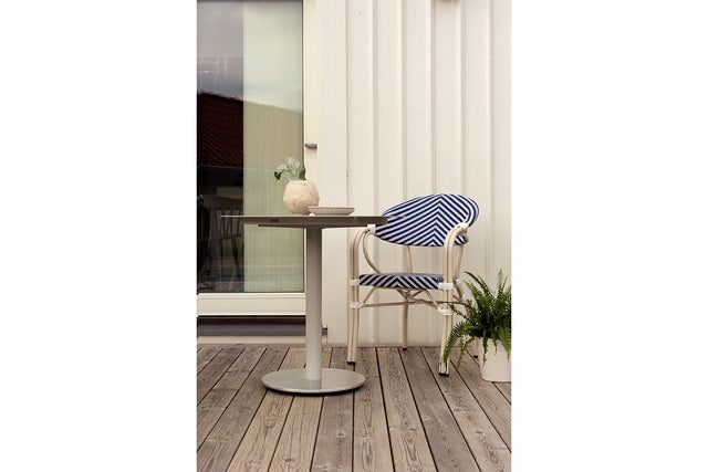 En färgstark och slitstark stolserie, skapad för caféer, bistros och uteserveringar. Med klassiskt vävd sits och rygg fångar Parterre den parisiska känslan i modern tappning. Stolen har en lätt aluminiumstomme, är stapelbar och konstruerad för att tåla daglig användning i offentlig miljö. Serien finns i flera färger och mönster.
