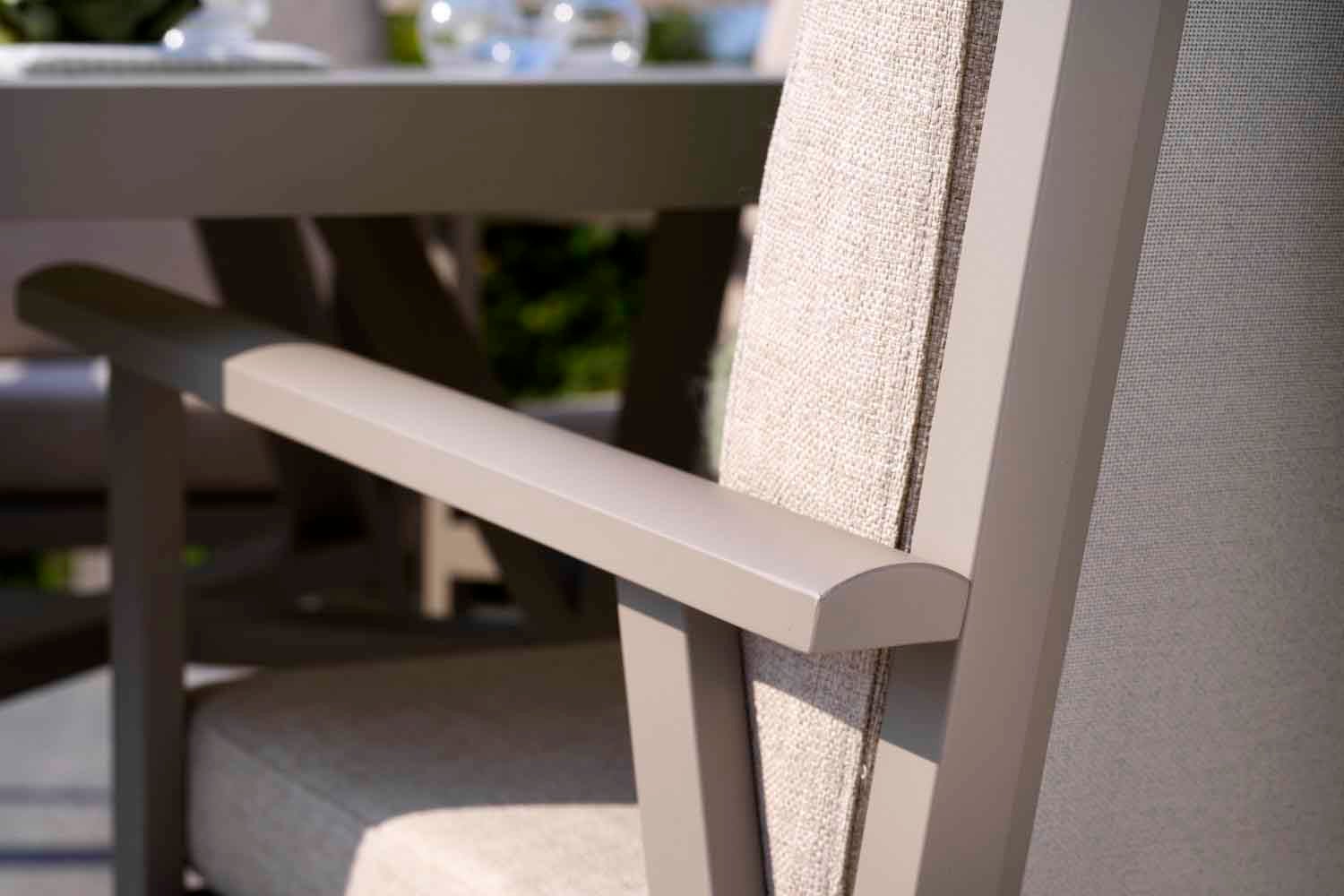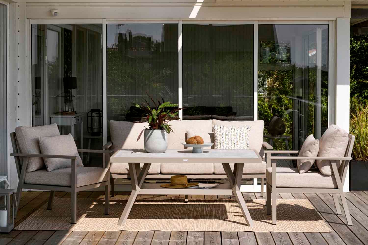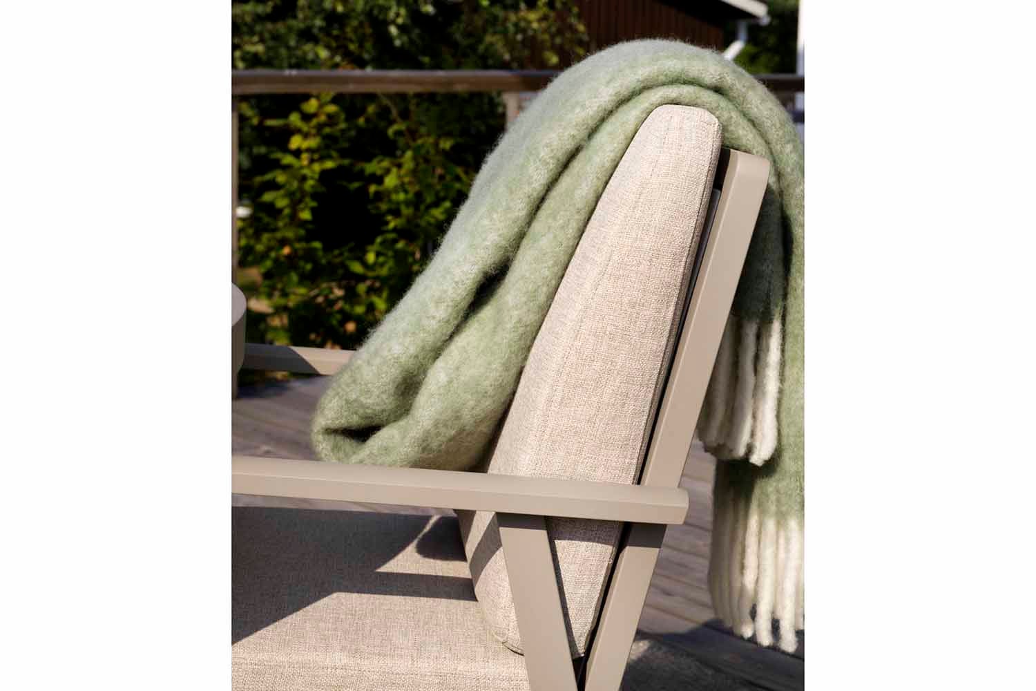 En modern och samtidigt klassisk serie i aluminium som bjuder på en rad kombinationsmöjligheter. De runda och mjuka formerna skapar en trivsam och inbjudande känsla i denna nya serie där detaljerna står i fokus. Finns med stomme i vit, grå eller khaki aluminium.