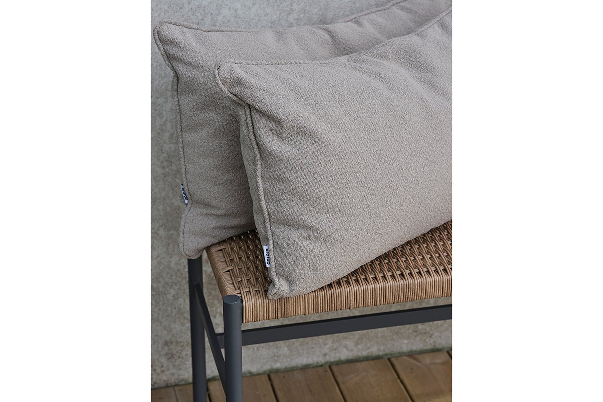 Premiumkudde av högsta kvalitet, fylld med mjukt syntetiskt dun och med ett yttertyg i bouclé-inspirerad tyg i återvunnen polyester.